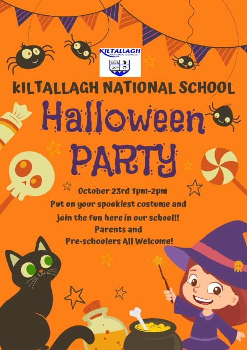 We are excited to invite preschoolers and their families to our Spooktacular Halloween Party at Kiltallagh National School on Thursday, October 23rd from 1 - 2 pm 🏫✨